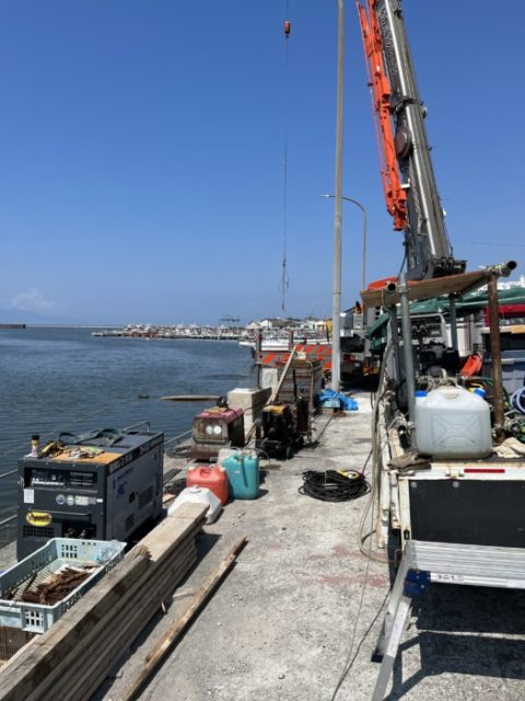 河内漁港にて型枠設置作業実施中❗️