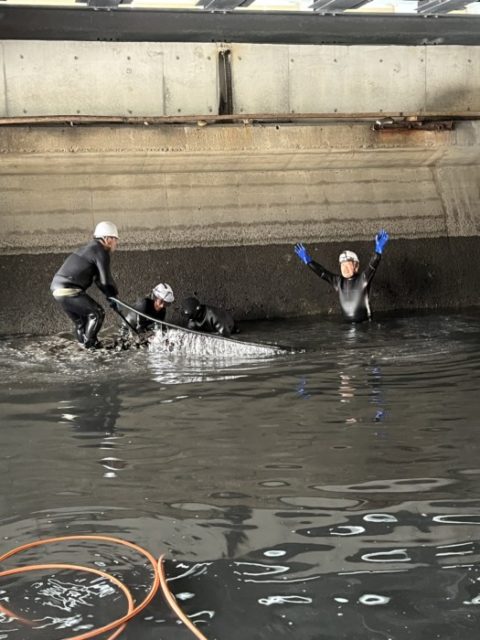 電気防食ケーブルを撤去中。 泥に埋まって大変(笑) Tweet 潜水工事・海洋土木工事・水中溶接切断工事なら福岡県北九州市の『溝上海事株式会社』へ 溝上海事株式会社 〒802-0822 福岡県北九州市小倉南区横代東町3-20-4 TEL/FAX:093-962-4125 代表直通:090-1878-9172 2024年4月18日(木) 12:37 | カテゴリー:お知らせ